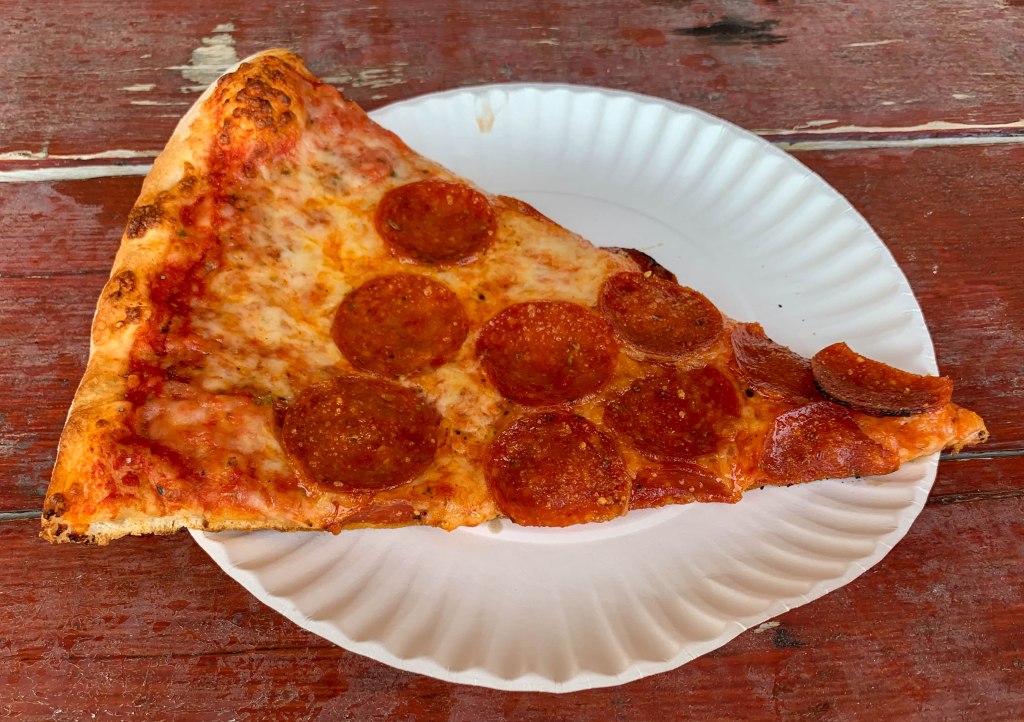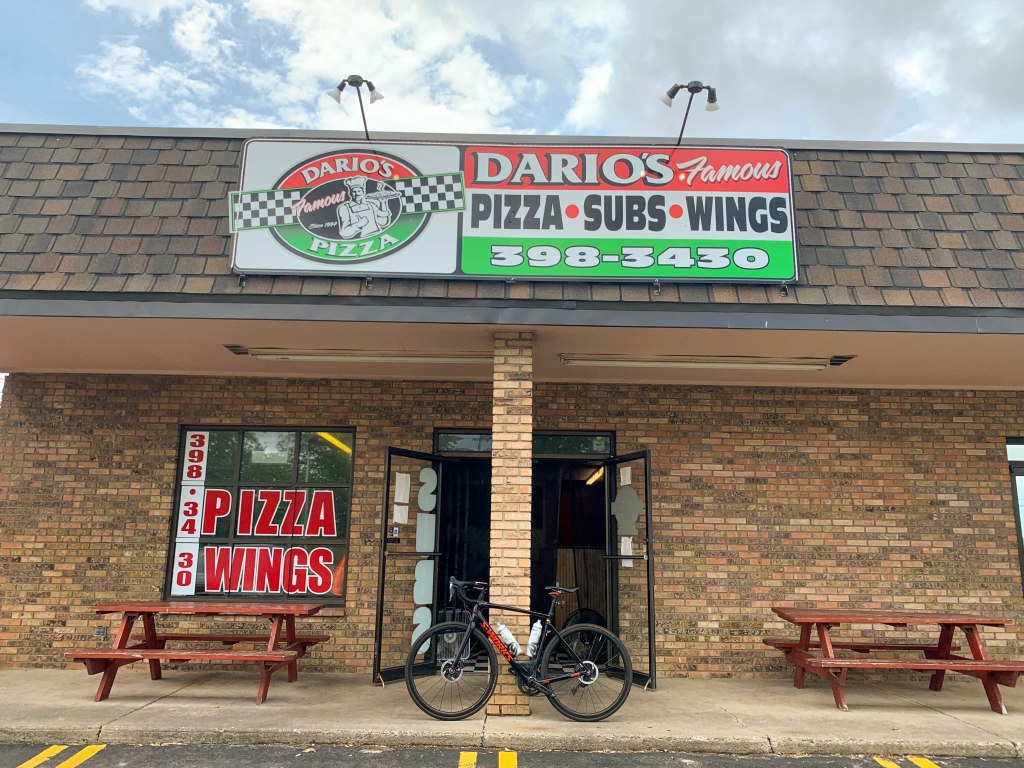 I pondered the term “pizza joint” as I rode. My mind’s eye pictures a “pizza joint” as a long, narrow street corner or stand alone brick building. Inside are pizza, beer, soda, and little else other than pictures of generations of family who’ve run the same establishment.