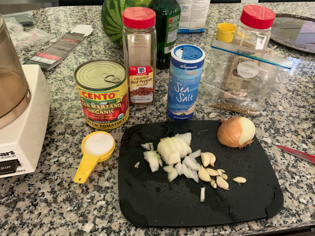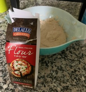 While watching the Napoli game, I split each dough into two: one of each dough would become pizza, the other a small loaf of sourdough bread, and I made my sauce using an “adjusted” Aunt Theresa recipe. My adjustment was to add a teaspoon of hot crushed pepper (which was my only minor mistake)