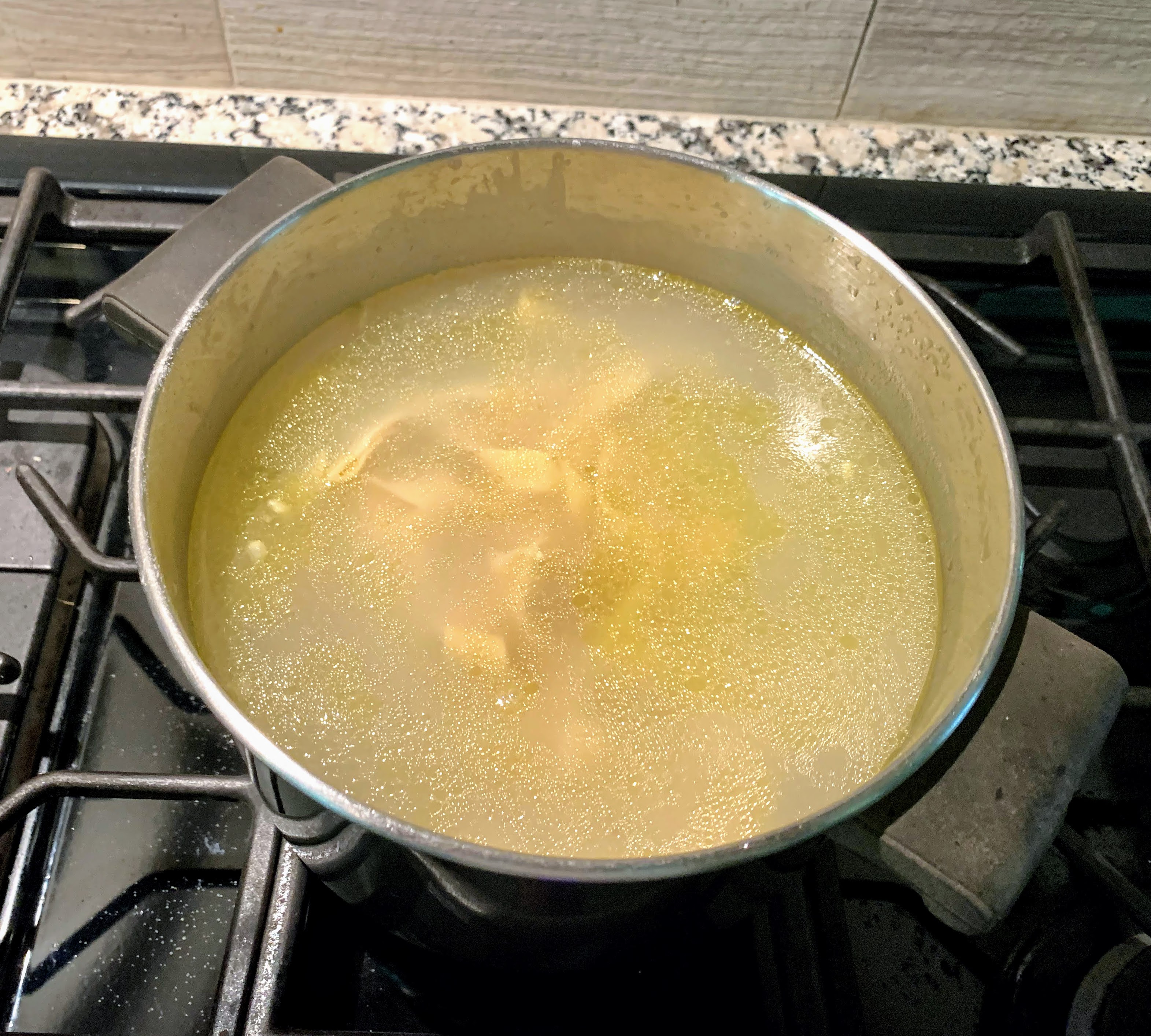 I got the sauce workstation set up and had the water boiling on the stove.