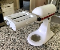 Let me tell you…the KitchenAid past attachment is incredible! We made 1.5 pounds of homemade fettuccine in about 10 minutes. It might have taken an hour or more with the hand crank and hand cut method.