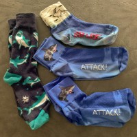 For 12 years of soccer games, though her final college game, I wore socks with sharks on them. I have 4 pair. I could wear them on the bike, but I have special plans; wedding, births, and the like!