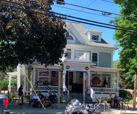 - The Pizzeria is an old house. It was busy, but they did a great job of moving tables out to the lawn under trees keeping social distancing