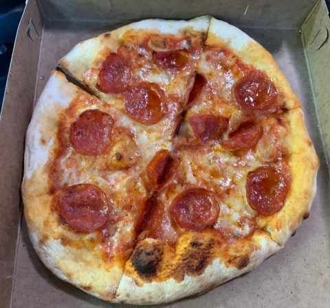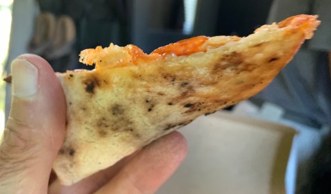 - The crust was soft with no crunch. I’m not sure if it was because it sat in the box for 20 minutes before we had a chance to eat it. It also had a nice char on the bottom but not burnt. I noticed a very large pile of wood outside the restaurant. So, I’ll assume that they had a “real” wood fired Neapolitan oven!
