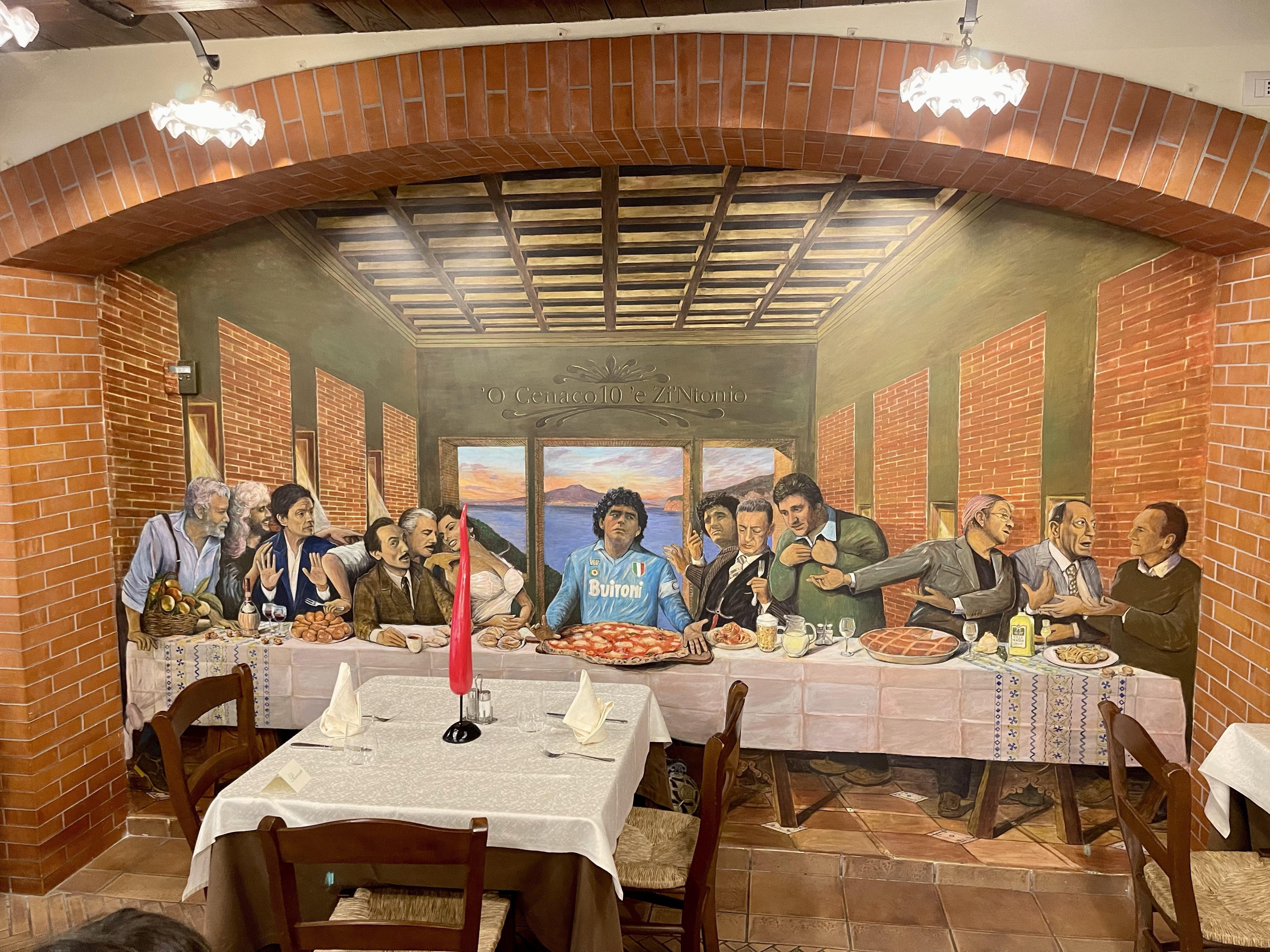 The atmosphere of Zi ’Ntonio was great. The tables are close enough to acquaint yourself with other diners. The pizziola was very accomodating of my obsession with ovens, there was a guitarist playing Neapolitan folk songs, AND THE MURAL OF DIEGO MARADONA IN A ”LAST SUPPER” SCENE with other famous Neapolitans!
