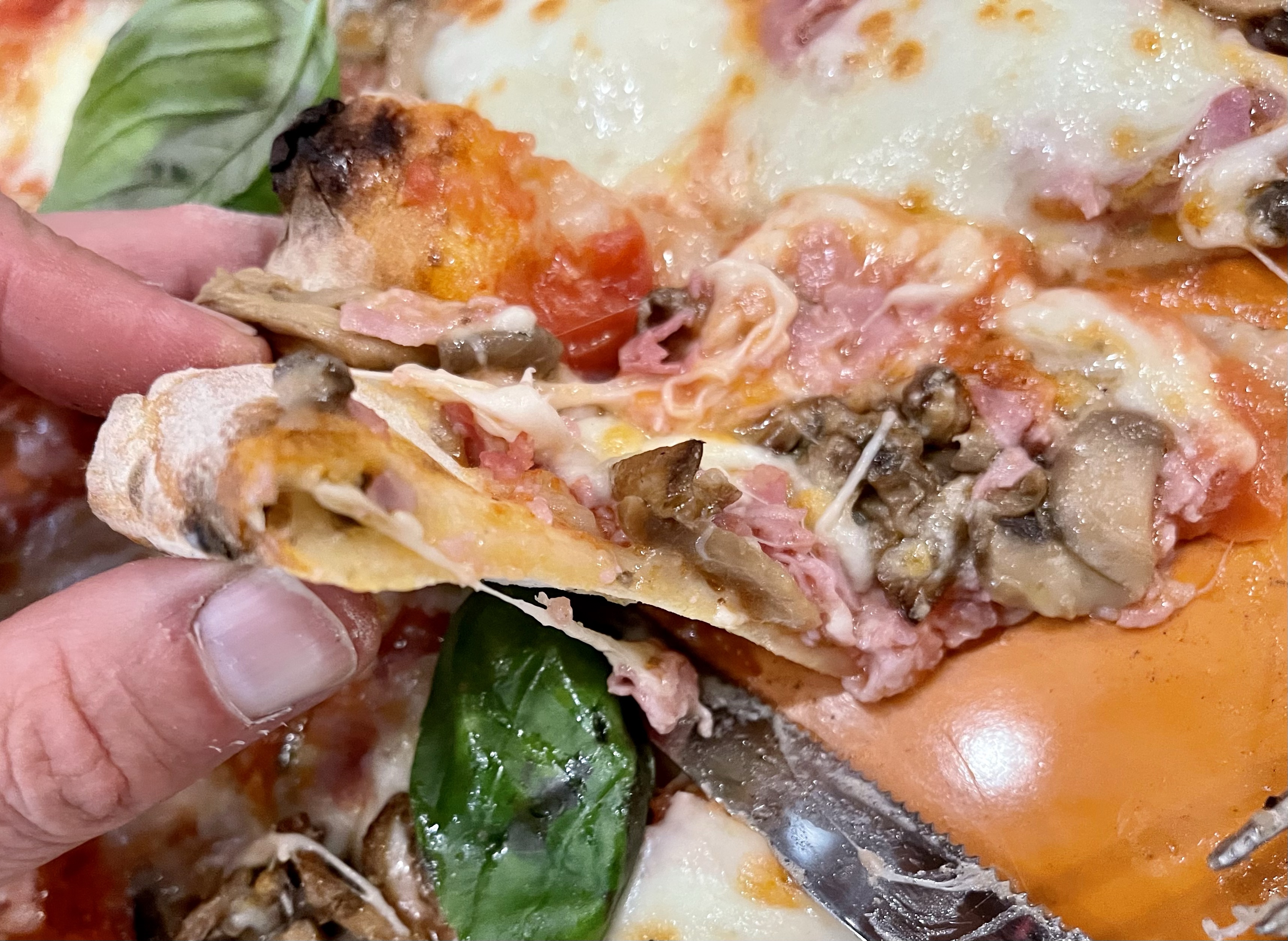 As a change of pace, I ordered prosuit and mushrooms (not arugula). I was hoping for a different result from the soggy crust. Unfortunately, again the crust was soggy in the middle, although, very tasty. I’m beginning to wonder if the soggy crust is due to the toppings I’m choosing. Arugula and Mushrooms are both watery.