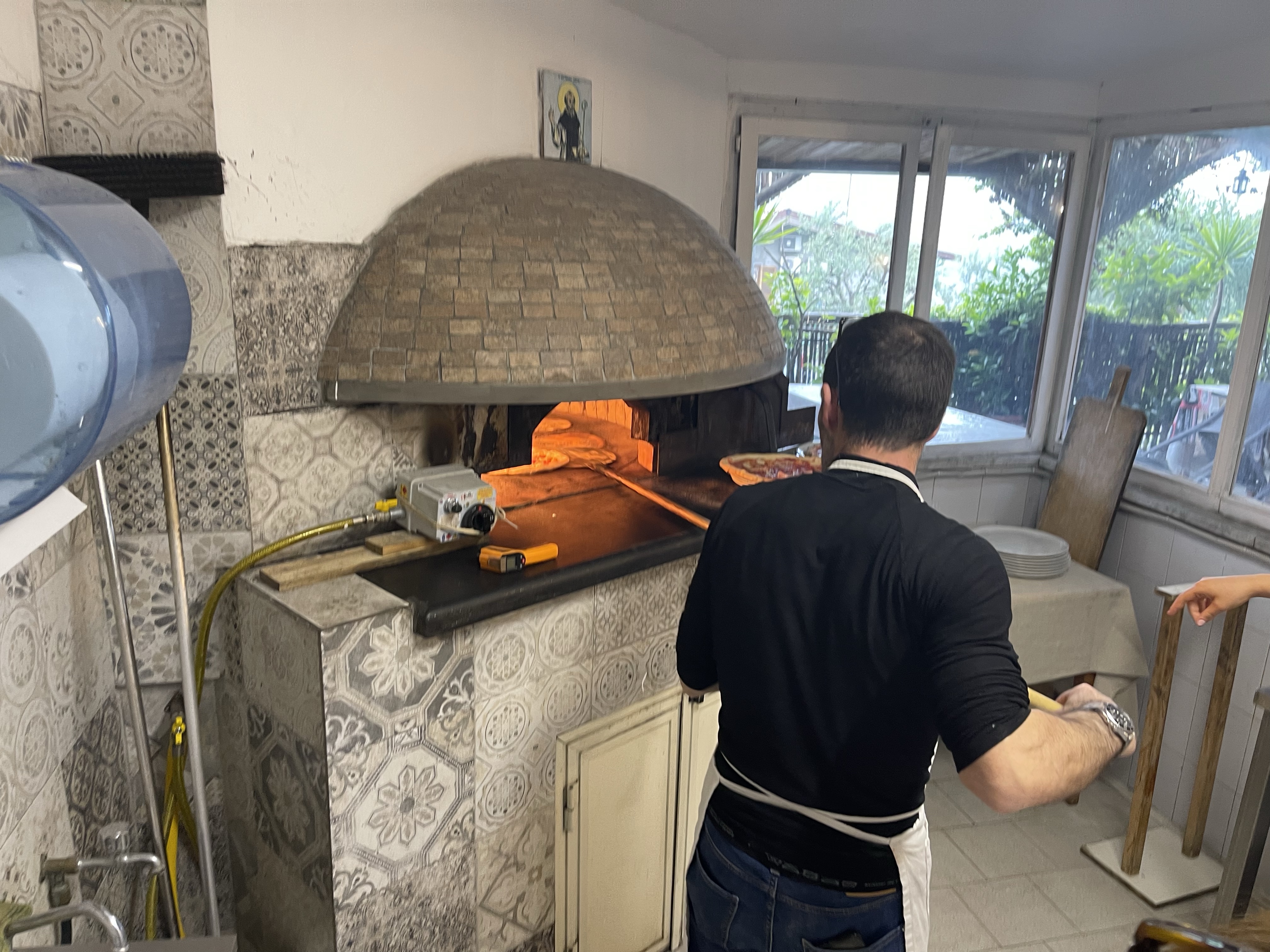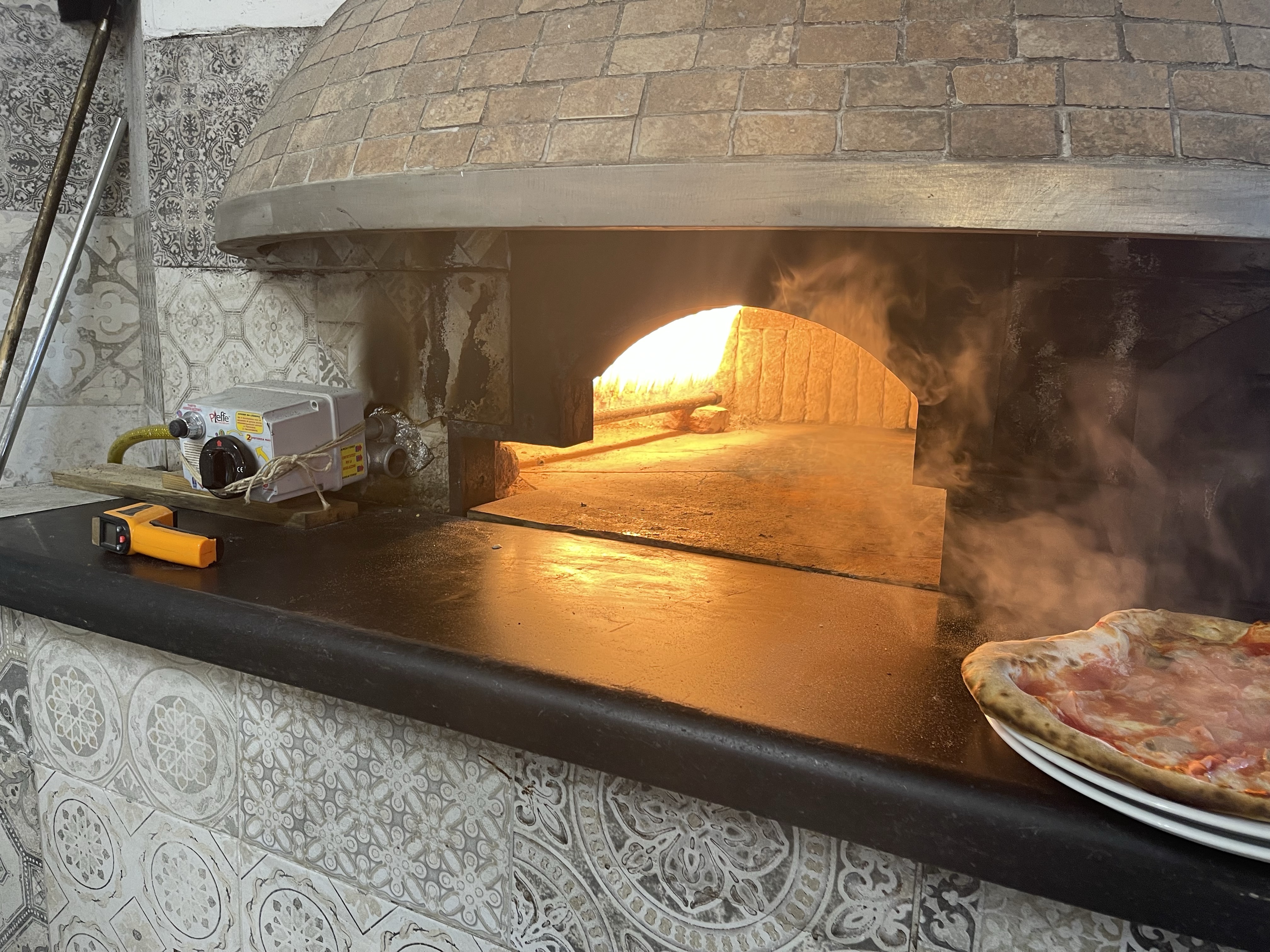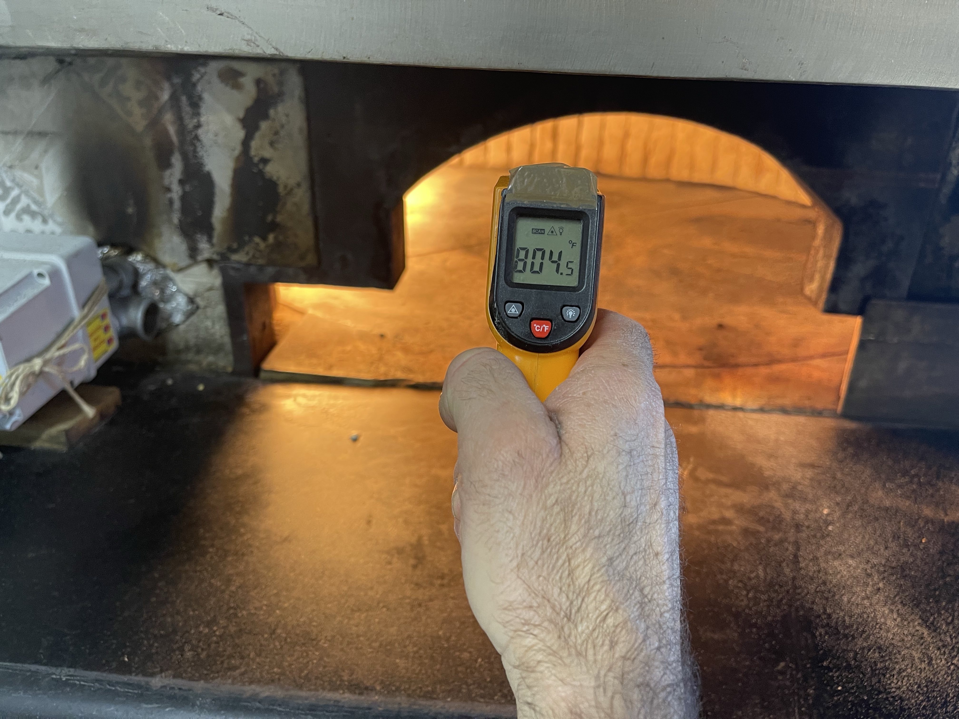 The oven was a classic Neapolitan brick dome. Francesco converted it to gas from wood when they closed the restaurant. The stone floor of the oven was 800+ when mine slid in.