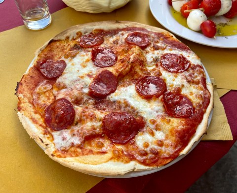 Comments – after the debacle of the day before, Petto’s Pizza helped me regain faith in Northern Italy as a place that you can find a “good” pizza. What made this pizza more special that it was in the main square of Montalcino (and on our 2nd visit, there was a Ferrari car rally in town!).
