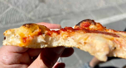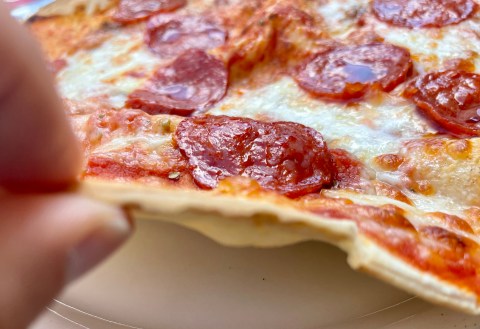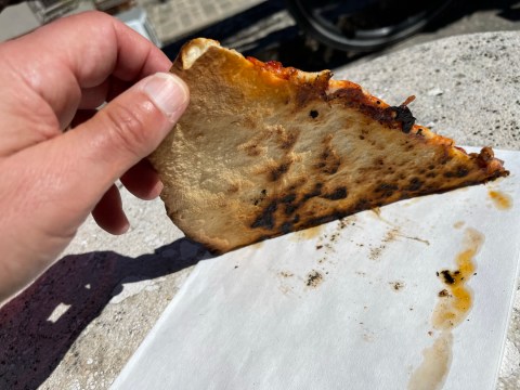 Crust – Thin and Crispy like a saltine cracker without the salt (more on this below), no cornicione