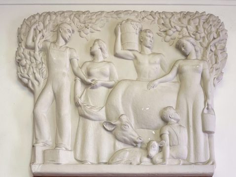 The interior houses an incredible bass relief depicting ol’ time Orange Farming. What makes this artwork extra special and unusual is the Native American and women are shown at near eye level as the farmer (typically a white male in the day). This is not something one might expect in the south, especially at that time. Whereas much of the Northern WPA PO artwork depicts the white men over the Native Americans and women.