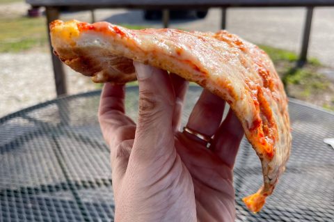 Well, the verdict: Good, but not great. The dough had a NY-style bake, but it got a bit soggy—cheese oils must’ve been reheating in there!
