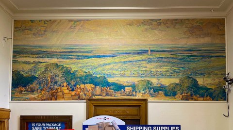 Internally, it’s mural is a stunning example of WPA period and location specific artwork. It’s landscape depiction of the orange groves of that region of FL.