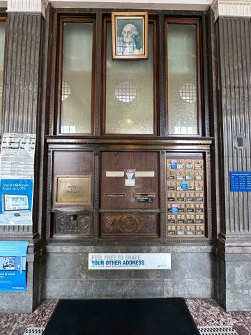 If the exterior of the Corry, PA PO is majestic, the interior is a carved marble, carved and cast brass, and mosaic tile piece of art!