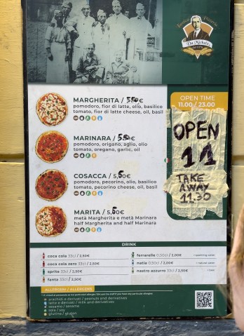 Da Michele has been on the top of my list to visit for several years. Cathy and I have attempted to visit in the past, but the line was just too long to wait. So, this time, we snagged an Air B and B immediately across the street from Da Michele so that I can watch the line, and pounce when the line gets short…DID I MENTION THAT I’M A PIZZA NERD?