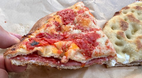 These were both very good, not nearly as salty as the one in Bari, but a nice amount of spice from the salami on the one, and a mellow, pleasant taste from the rosemary and rigott on the other.