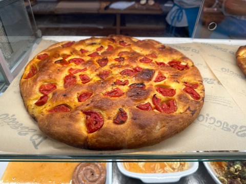 As you can see from these focaccia from Alberobello, these are the stuffed style. One is salami stuffed in a Bari tomato style focaccia. The other is a white rosemary and oil style stuffed with rigott and prosciutt crudo.