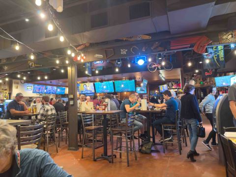 | Ambiance | Another high ceiling, exposed utilities, concrete bar…e gads! LOUD. It’s taken two months for my hearing to return. No charm…. when will I learn. Their original, donton (see 8/31/22 blog post here) location in the Burgh looks very joint-like. We shoulda’ gone there. |