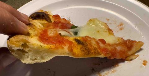 | Cornicione | Crispy, spongy, bubbly, chewy Once again, a very nicely done texture, but lacked flavor As I’ve mentioned in many of my recent reviews, the dough/crust’s taste can be better as cold, day-old pizza. That was not the case with V Pizza crust. |