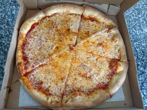 | Cheese | Cheese Type – Moozedell, no really other taste, so likely that was it Cheese Distribution – All over Greasy, but not really stringy like many NY style pizzas (again, the cheese might have set up during the travel time, but it wasn’t that long of a trip), Salty |
