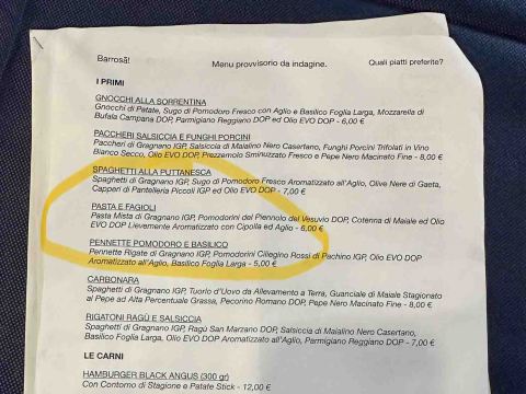 - That menu item diverted my attention from pizza, and when the young woman (the owner’s wife) approached our table….upon entering the ristorante, I surmised that no one spoke English, so I said, “PAST E’ FAZOO e’ una Coka Zero, per favore.” (Past e’ Fazoo and a Coke Zero, please.)