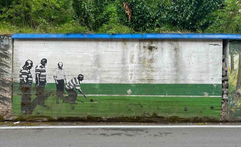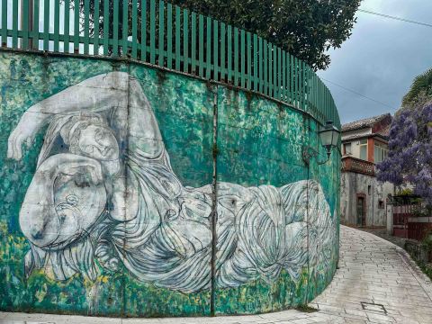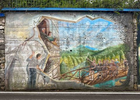 As we approached the piazza of Ferrari, we were greeted by a wall adorned with several murals. Each painting was a portal to Serino’s bygone eras, capturing the essence of life and times long past.