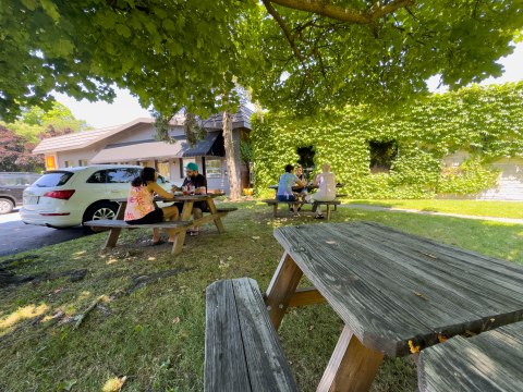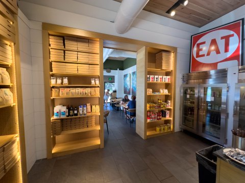 | Ambiance | Inside – modern, but not the disgustingly cheap, high ceiling with exposed utilities! The small market of Italian specialty food and artwork made the inside feel warm and welcoming. Outside – also modern with a muted paint job which was a drastic change from the old Jreck’s Subs lime green motif days. There are picnic tables in shade which we used on the warm July day. Wonderful! |