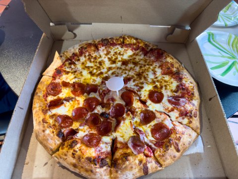 | Toppings | Pepperoni (on half), Cheese Fresh – site says they freshly grate their moozedell daily There was a condiments bar with grated cheese, oregano, hot sauce, but I choose not to add any to preserve the intent of the pizzaiola (who seemed to be the owner’s daughter) |