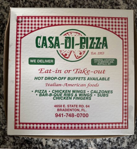 I needed to take a quick trip to FL. I wanted to see if we had any damage from Hurricane Debby. Luckily, there was none! While there Capo Chuck suggested that we try Casa di Pizza. Chuck and his wife rave about the “Buffalo Style” pizza at Casa di Pizza. It serves as a friendly reminder of their Buffalo roots. So, since Chuck and I were close by, we stopped in!