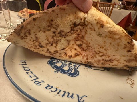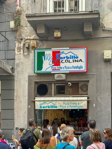 The plan was to finally hit Tutino’s, a place I’ve walked by on every Napoli trip but never entered. They’re famous for Pizza a Portafoglio — basically a Neapolitan pizza folded twice like a wallet so you can eat it on the go. Neapolitan Street pizza. Bellisima!